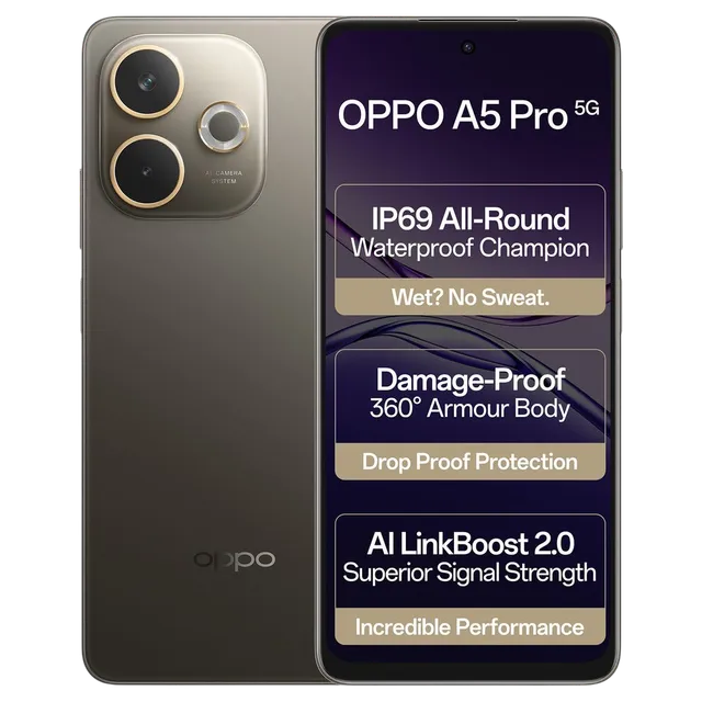 OPPO A5 PRO 5G (8GB RAM + 256GB STORAGE) | 6.67” HD+ 120Hz Refresh Rate Screen | 45W SUPERVOOC | MediaTek Dimensity 6300 | IP69 | (MOCHA BROWN)