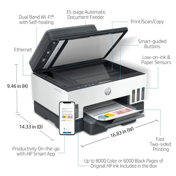 Compatible Cartridge (Color) : HP GT52 70-ml Cyan bottle (~8000 pages), HP GT52 70-ml Magenta bottle (~8000 pages), HP GT52 70-ml Yellow bottle (~8000 pages)