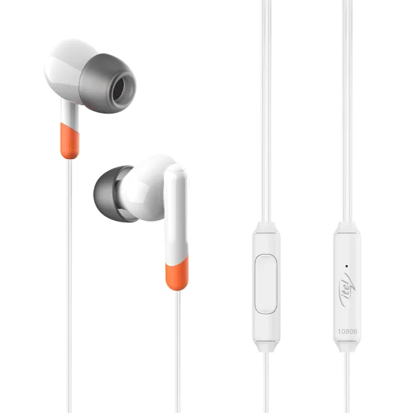 ITEL IEP12 Wired Earphones with 10mm Drivers, Tilt in-Ear Design, 10-Min Fast Charge for 120 Min Playtime, and in-Line Microphone (WHITE)