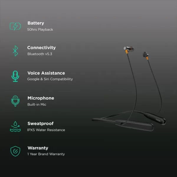 Sales Package : 1 U Neckband, Charging Cable, User Manual, Warranty Card, 2 Pair of Ear Tips