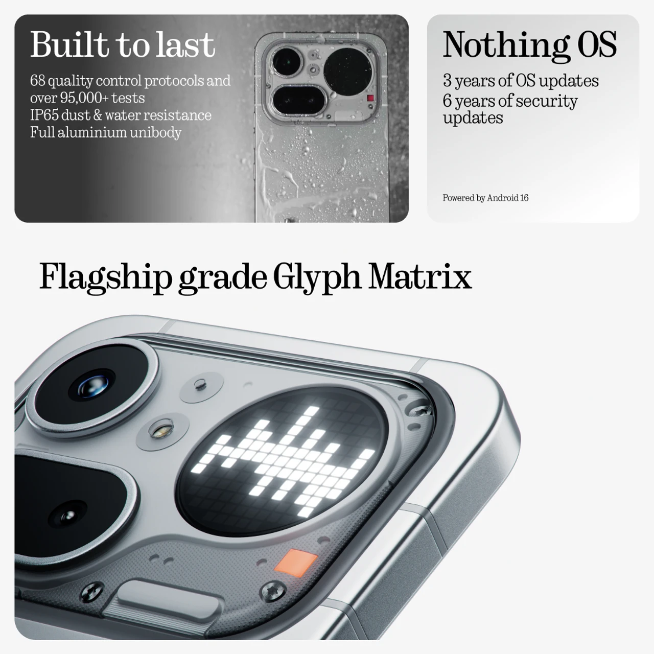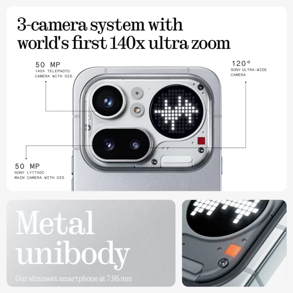 Extra Features : Qualcomm Ai Engine, Qualcomm Spectra Image Signal Processor, Flagship grade Glyph Matrix