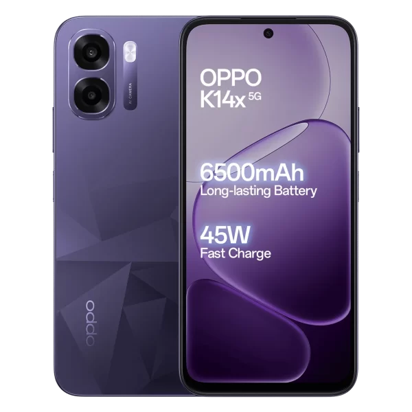 OPPO K14X 5G (4GB RAM + 128GB STORAGE) | MediaTek Dimensity 6300 | 6500mAh Battery | IP64 Dust & Water Resistance | PRISM VIOLET