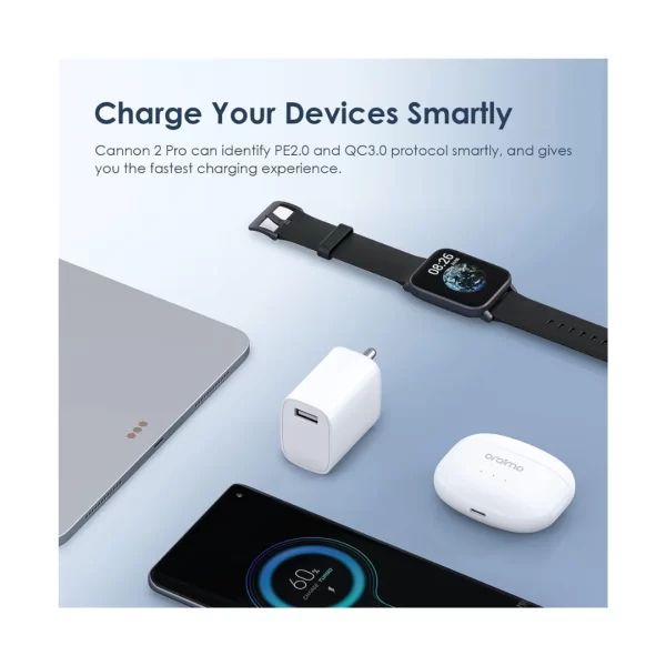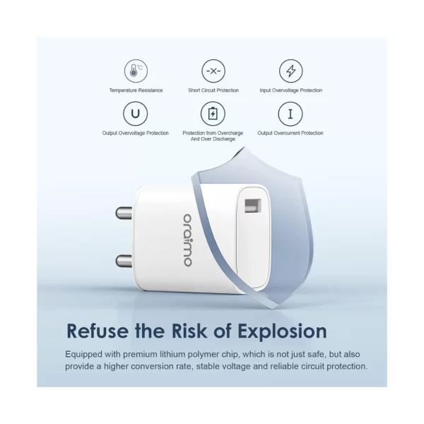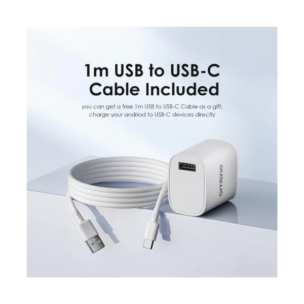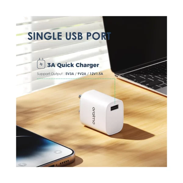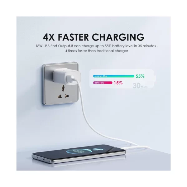 ORAIMO (OCW-I97S+C53) 18W USB Wall Charger, 3A Super Fast Charger Wall Adapter PE2.0 & Quick Charge 3.0 Wall Charger Phone Adapter with DETACHABLE Type C Cable, 1 meter (White)