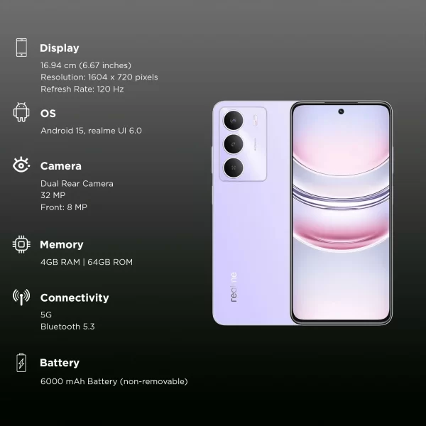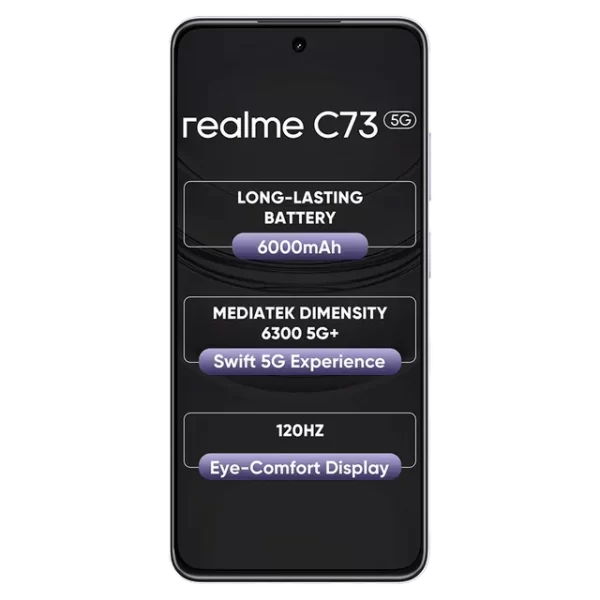 REALME C73 5G (4GB RAM + 64GB STORAGE) 6.67 inch | MediaTek Dimensity 6300 | 6000mAh with 15W Charge | AI Smart Loop (CRYSTAL PURPLE)
