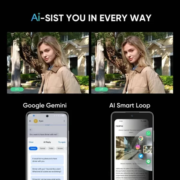 AI Features : AI Smart Signal Adjustment, AI Clear Face, Google Gemini, AI Smart Loop